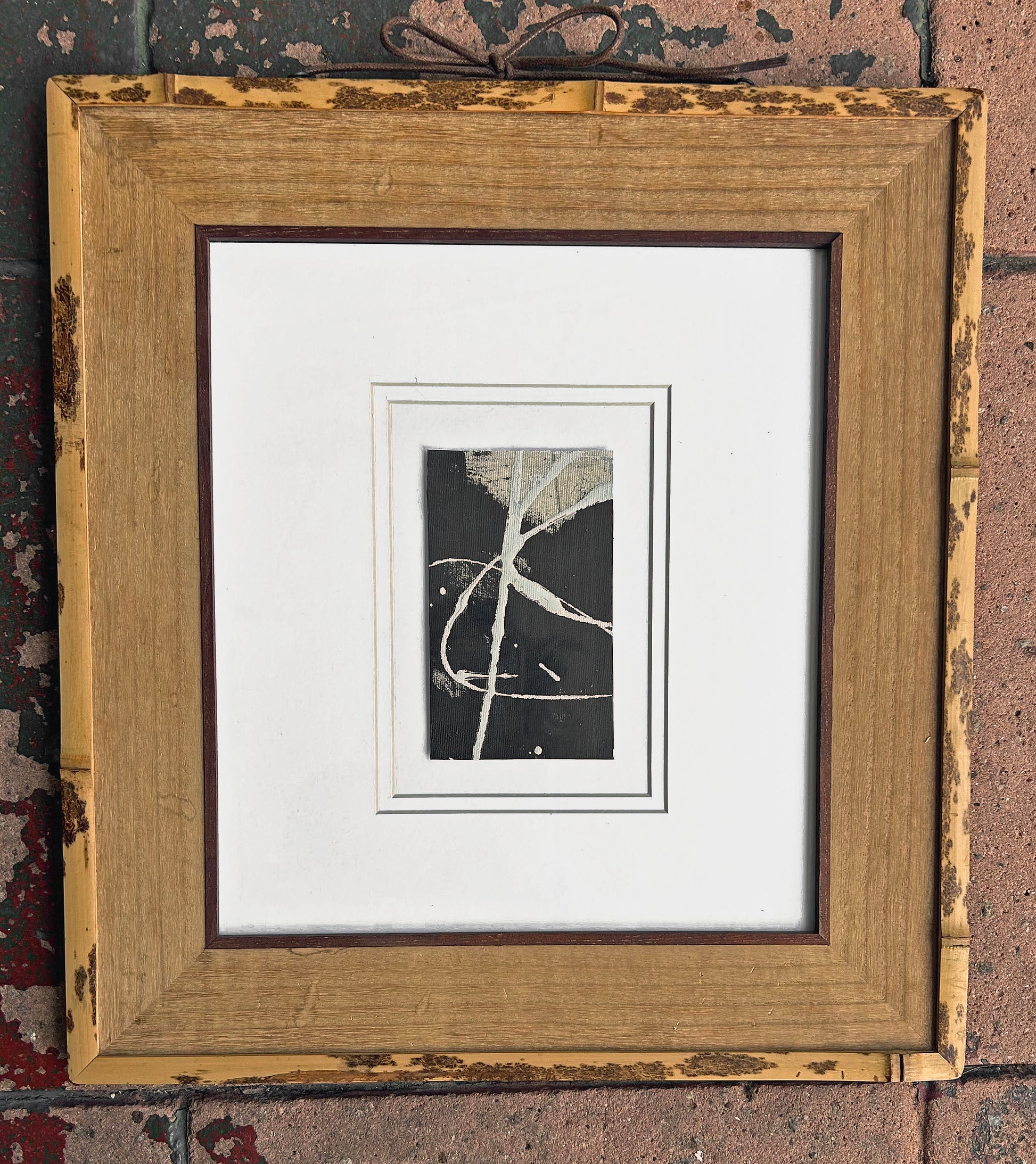 Painting is 3"x5" and it is framed in a beautiful antique bamboo wood frame. The total dimensions are 13.75"x15".