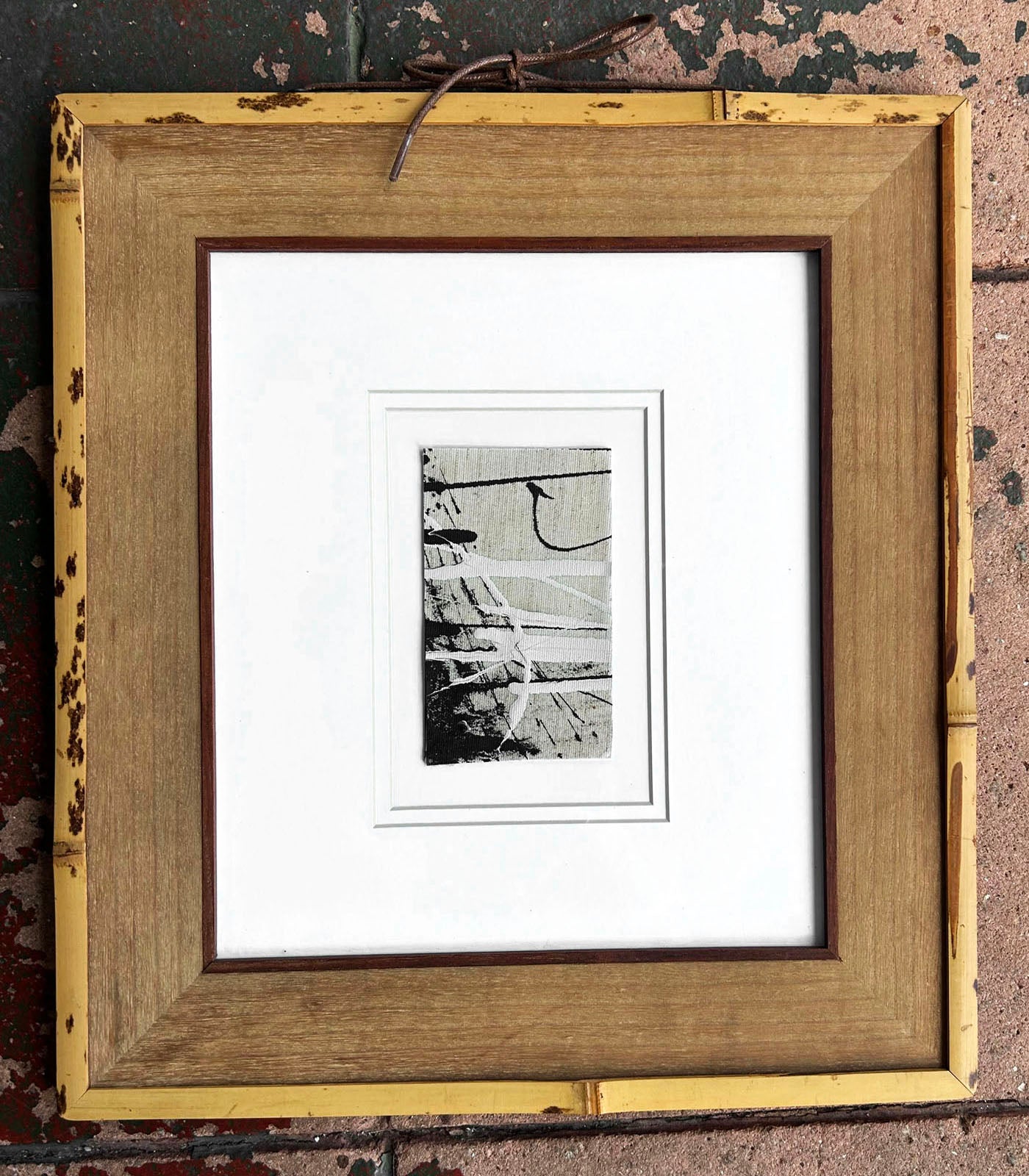 Painting is 3"x5" and it is framed in a beautiful antique bamboo wood frame. The total dimensions are 13.75"x15".