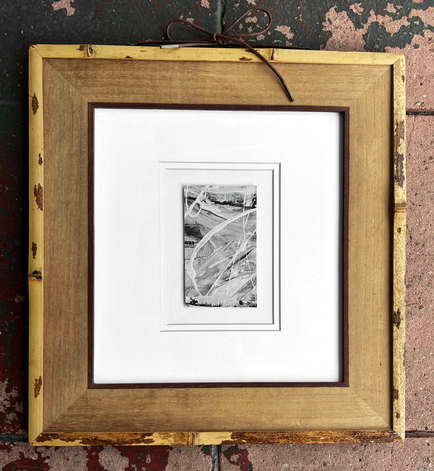 The collection of 10 paintings titled “Milky Way” features tiny black and white abstracts that pack a cosmic punch! Painted on linen, they are little windows into the night sky. Each piece feels like a glimpse into the stars—moody, mysterious, and quietly powerful.