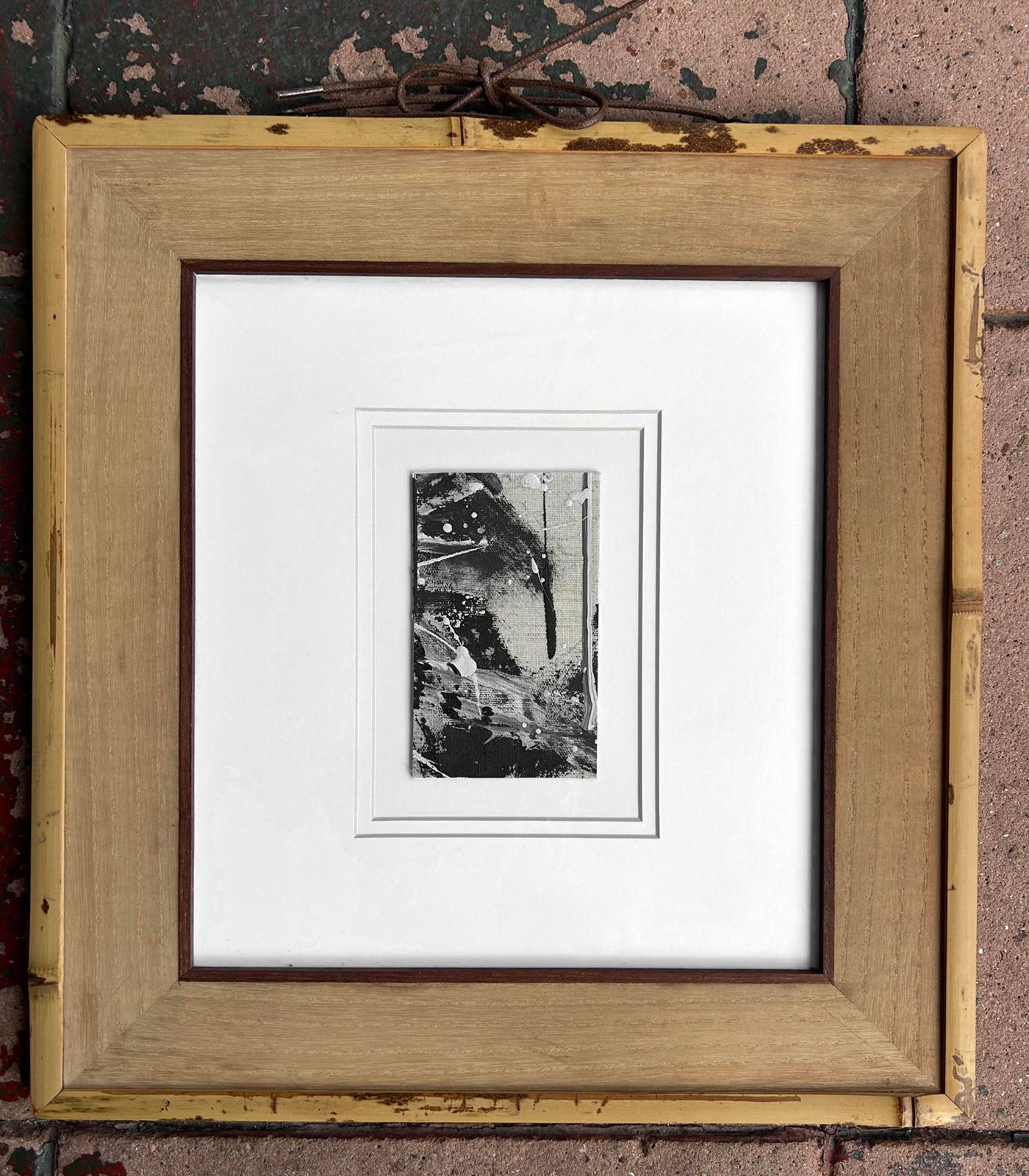 The collection of 10 paintings titled “Milky Way” features tiny black and white abstracts that pack a cosmic punch! Painted on linen, they are little windows into the night sky. Each piece feels like a glimpse into the stars—moody, mysterious, and quietly powerful.